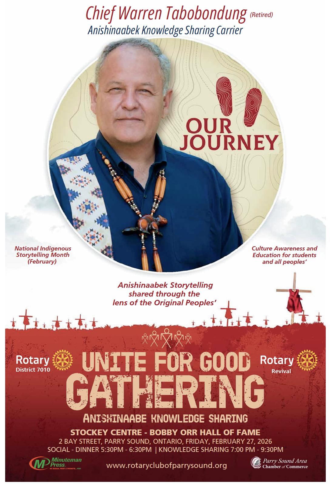 You are warmly invited to the Unite for Good Gathering — a powerful evening of First Peoples’ oral storytelling, where song, dance, drumming, and meaningful Anishinaabek teachings are shared souly through an Indigenous lens. This rare opportunity welcomes friends of the Original Peoples’, community members, educators, students, and all peoples’ of all ages to experience the living spirit, cultural wisdom, and timeless teachings of the Original Peoples’ of Turtle Island.